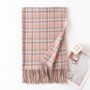 Outono Inverno Cachecol Clássico Tassel Xadrez Lenço Quente Macio Chunky Grande Xale das mulheres